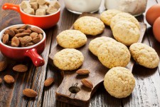 Form cookie dough into 35 small balls and roll in additional almond flour.