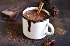 Remove from heat, and add 1 teaspoon cocoa powder, 8 ounces Lily’s dark chocolate chips, and 1 teaspoon vanilla extract to saucepan.